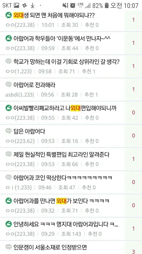 서울소재 대학 중 외대밖에 없어서 폐교시 외대 간다는 행복회로 풀가동중임