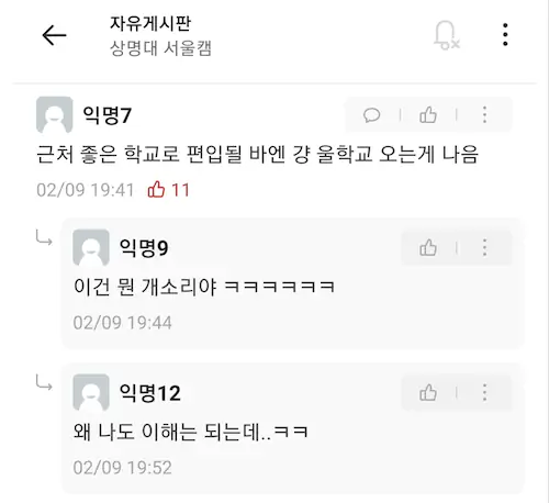 가더라도 지네들이랑 비슷한 팡띵상가로 가야지 주제도 모르고 연대 들먹이는거 괘씸하거든요