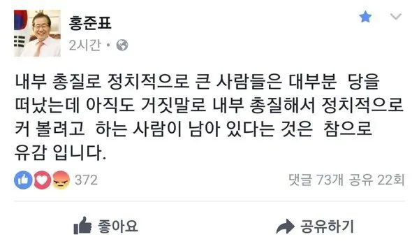 지가 당대표로 있을땐 좀만 뭐라그래도 내부총질하지말라고 함