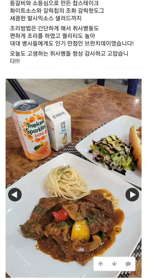 안녕하십니까 수방사 52사단에서 복무하고있는 한 병사입니다 저희사단은 작년 11월에 격리자들의 급식사진 제보로 가장 먼저 부실급식에 대해 논란이 나왔고 년초에 타 부대들도 하나 둘씩 터