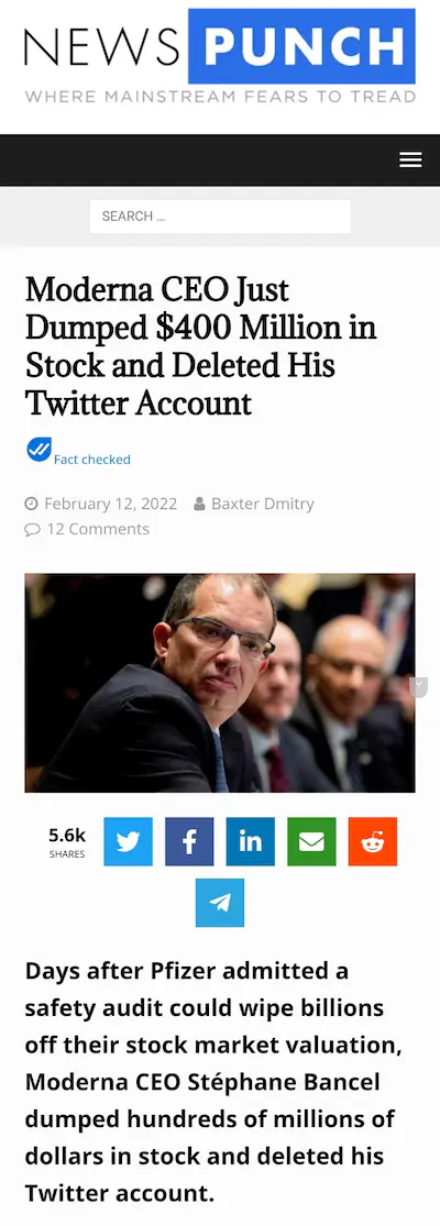 화이자(Pfizer)가 안전 감사가 주식 시장 가치에서 수십억 달러를 날려버릴 수 있다고 인정한 지 며칠 후, 모더나(Moderna)의 CEO인 스테판 방셀(Stéphane Bancel)은 수억 달러의 주식을 처분하고 그의 트위터 계정을 삭제했습니다.