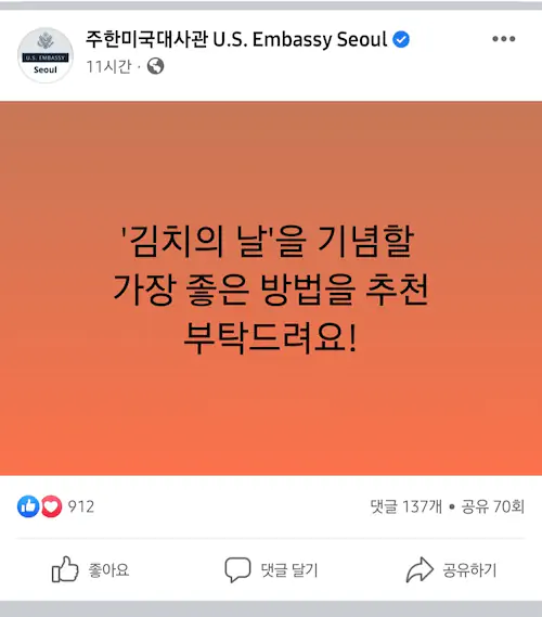 미국 버지니아주에서는 김치의 날도 만들어줌 ㅋㅋ