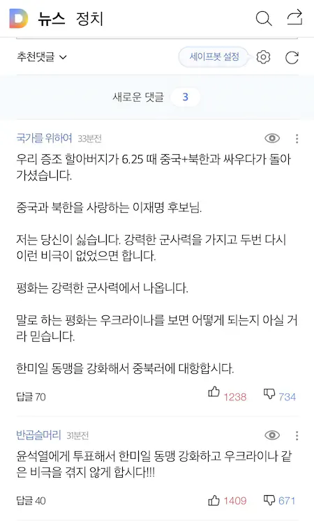 이재명 '대화를 통한 평화' 댓글 반응 ㅋㅋㅋㅋ