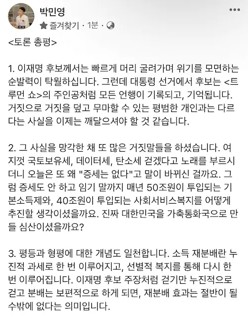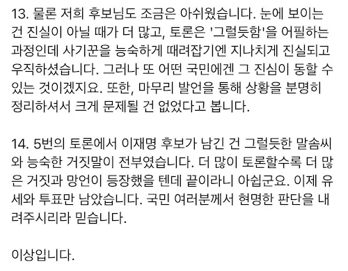 이재명은 토론 후 지지자 다 잃는듯.