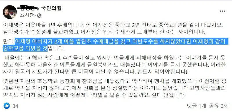이재명 고향 안동사람의 폭로