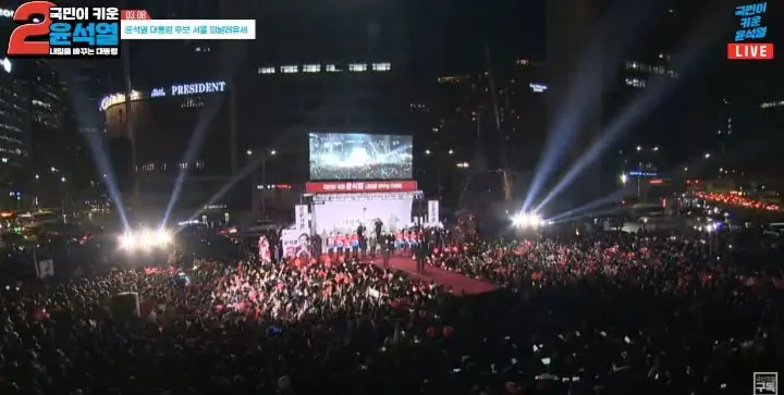 윤석열 유세 뒤 건물 단어 President