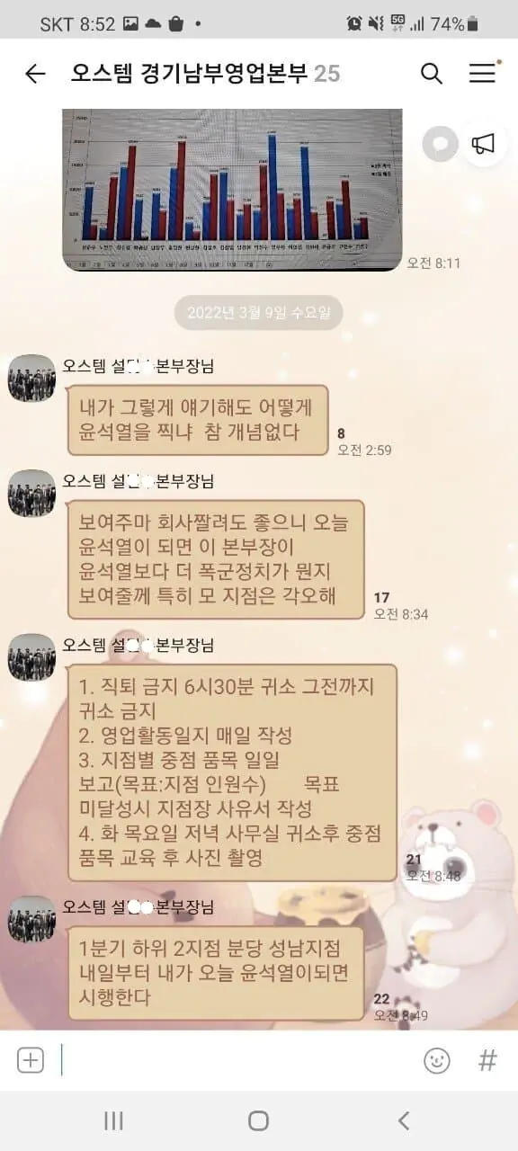 오스템 본부장이 윤석열을 찍었다고 갑질 선언