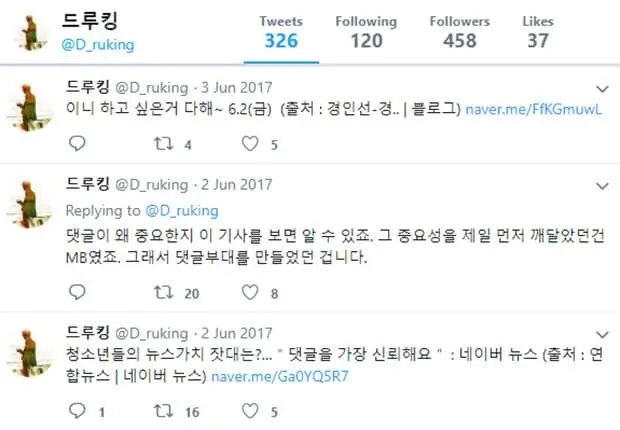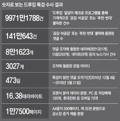참고로 드루킹은 자기는 일원일뿐 본인 말고도 더 윗사람들이 있다는 의미심장한 말을 남기기도 했는데... 이건 아직도 밝혀지지 않은 상태야.