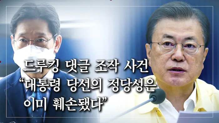 “김경수, 대선을 불공정한 공작정치의 장으로 만들어” “文, 몰랐다면 손바닥으로 하늘을 가리는 짓” 지난 대선에서 ‘드루킹 댓글 조작 사건'으로 ‘MB(이명박 전 대통령) 아바타'론이 확산