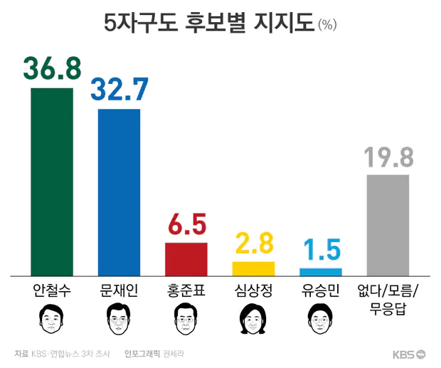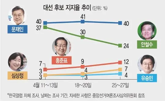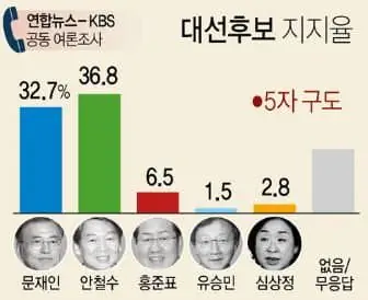 너무나 개돼지였던 멍청한 국민들이 저 프레임에 흔들렸고 상승중이던 안철수의 지지율은 문재인과 홍준표에게 분산되어대선 득표율이 7%에서 시작한 홍준표에게도 밀리게 돼.