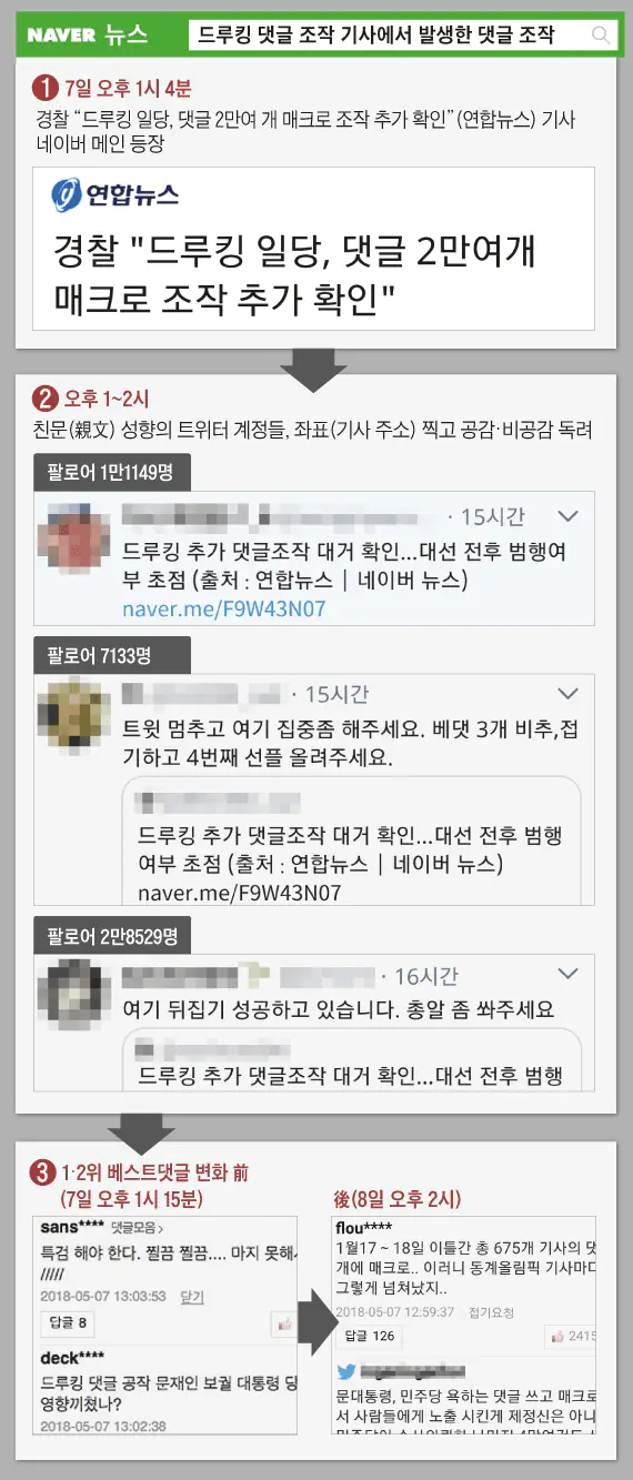 지금도 드루킹 비슷한 조직 활동중임 대선 끝나자마자 최저임금폐지 의료민영화로 선동하는거 봐라ㅋㅋ