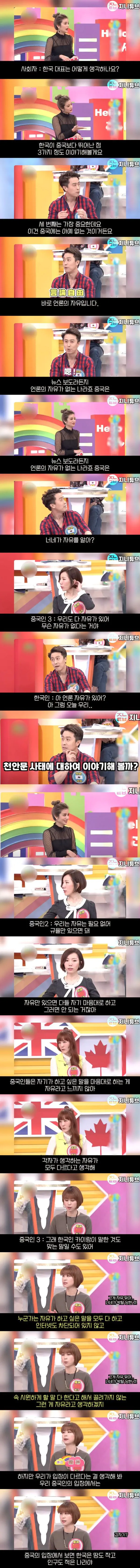 짱개들 정신승리 논리임. 한국은 땅이 작아서 통제가 쉬운데 지네는 땅도 넓고 인구도 많아서 지금 공산당이 하는 방식대로 하지 않으면 힘들다. 그래서 지금 방식이 옳다 이 이야기임