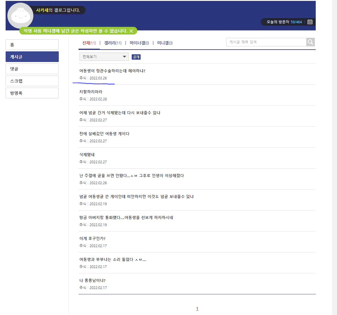 우선 불쾌하게 받아들이셨다면 정말 죄송합니다 글이 내가 쓴 글 보기나 검색하지 않으면 뜨지 않게 돼서 욕먹을 거 각오하고 재업합니다
