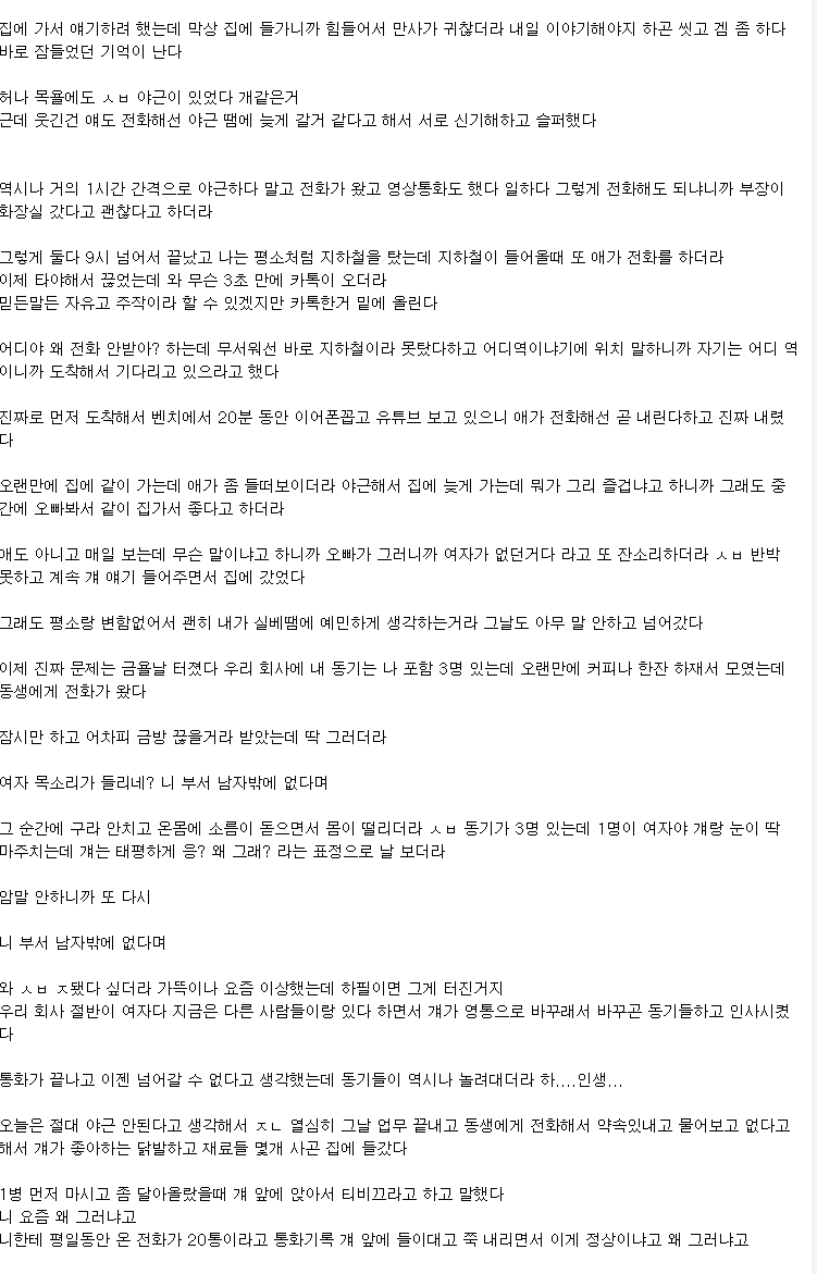 하지만 저하고 있던 일을 모두 그 친구들이 알고 있더라고요 심지어 같이 잔 거까지요