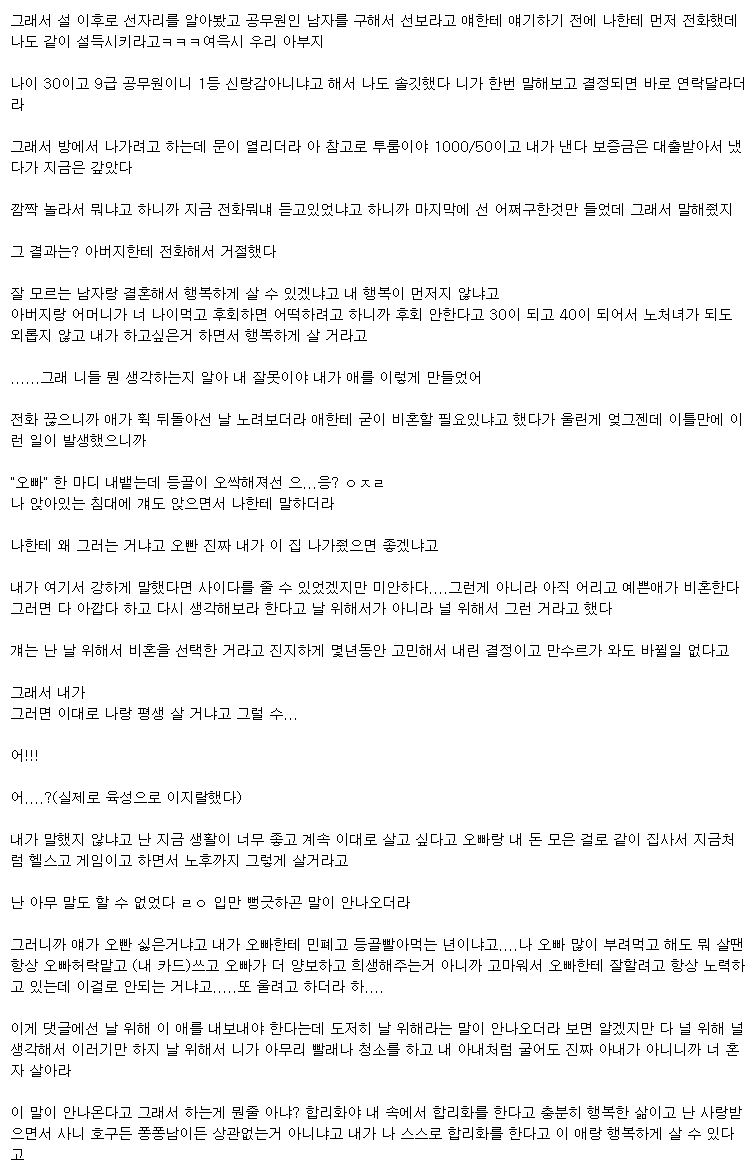 저도 결혼할 생각은 없어요 다시 남자를 만날 생각도 없고 지금도 충분히 만족하고 살아요