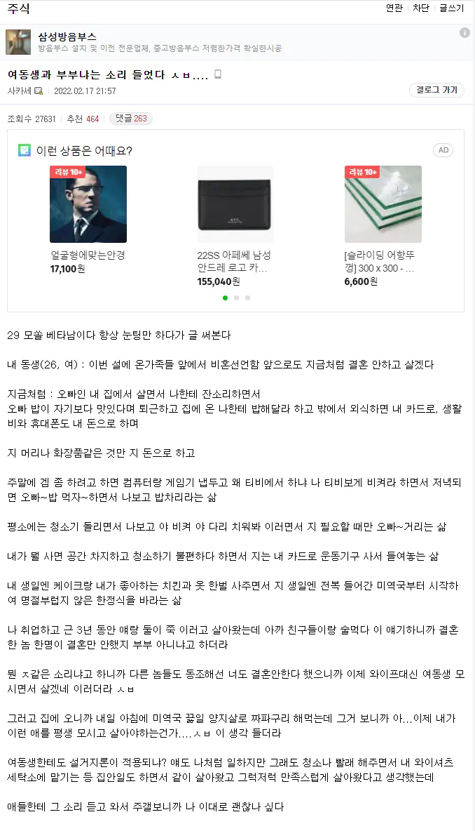 저도 오빠덕에 부족한 거 없이 알바도 안하고 대학생활 했지만 그래도 좀 그렇더라고요