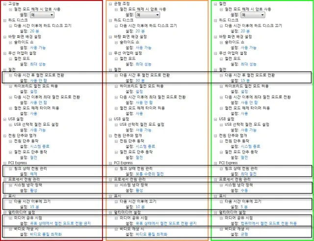 ▲ 전원관리옵션에 세가지 모드가 있습니다.