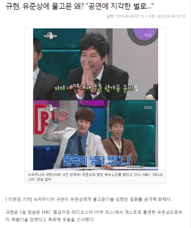 규현, 유준상에 물고문 왜? "공연에 지각한 벌로…"