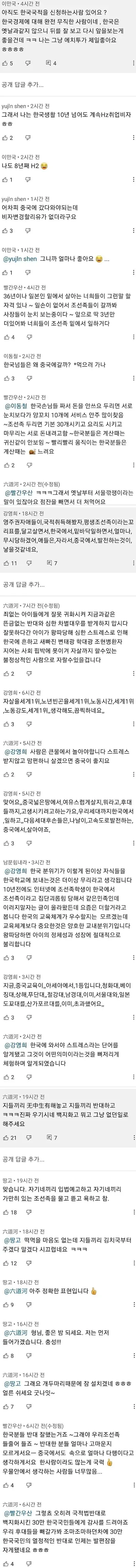 중국인 조선족 우리나라 선거개입하는거 방금 눈으로 확인함ㅋㅋㅋ 윤석열 응원하는 댓글 하나 썼는데 대댓글이 달렸다. 닉이 존나 무섭다. 20대도 척살하겠대. 한번 이 분의 계정에 들어가 어