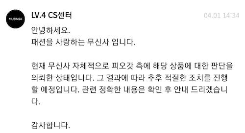 무신사에서 판매한 제품을 크림에서 감정했는데 가품으로 나옴