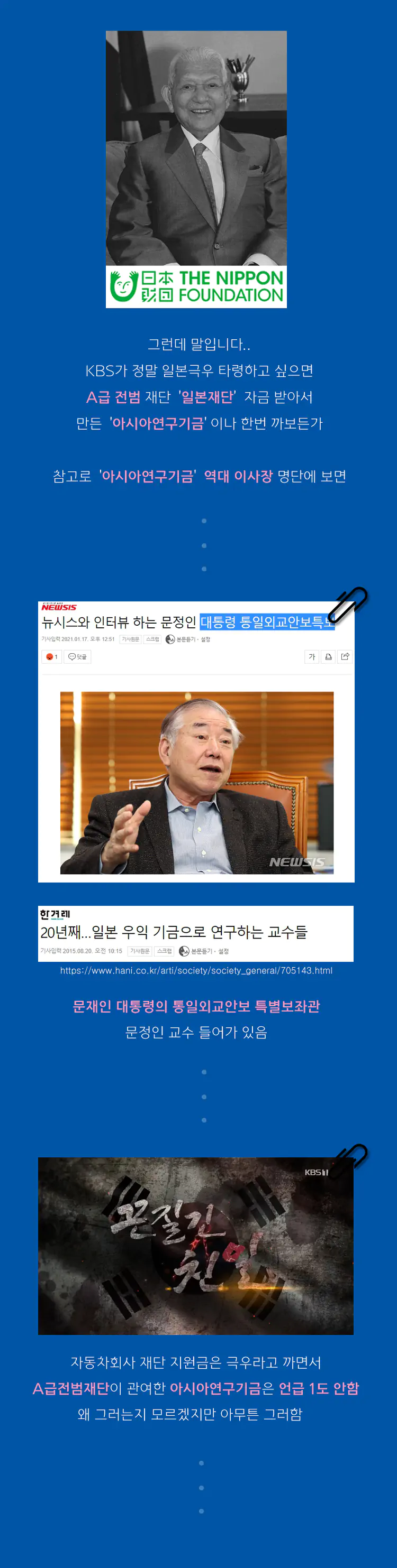 * 문재인의 통일외교안보 특별보좌관(특보) 문정인, 일제 A급 전범 '일본재단'이 출연한 '아시아연구기금' 이사장 역임