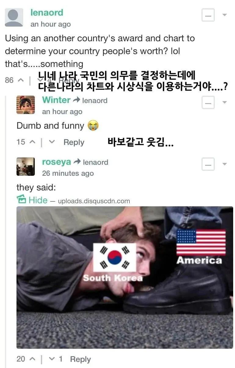 안 그래도 지금 여자 군대보내고 체육인들 예술인들 특혜 다 없애자고 해도 모자랄판인데 뭔 길거리에 똥 싸지 말라하니까 "저기도 똥 있는데?" ㅇㅈㄹ하면서 싸재끼려고 하는중 ㅋㅋ