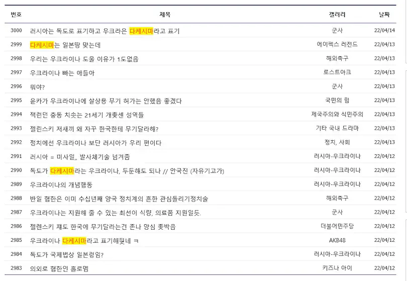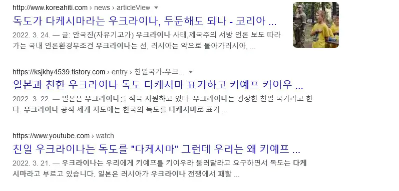 ps. 우크라이나나 러시아나 둘 다 공식 표기는 '리앙쿠르 섬'이다. 이걸로 친일로 몰아갈려면 미국 보고도 친일이라고 해보던가