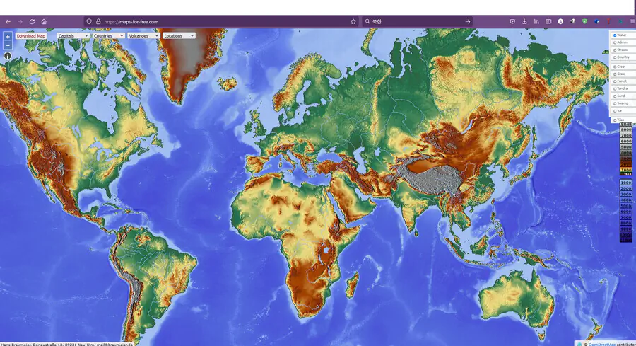 애초에 저 사이트 소개문을 보면 본격적인 세계 지도가 아니라 세계 지도용 레이어(그러니까 밑그림)을 제공하는 사이트다 (The vision of Maps-For-Free is to offer free worldwide relief maps and other layers which can easily be integrated into existing map projects.)