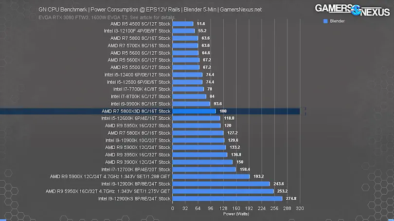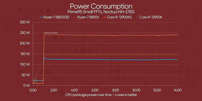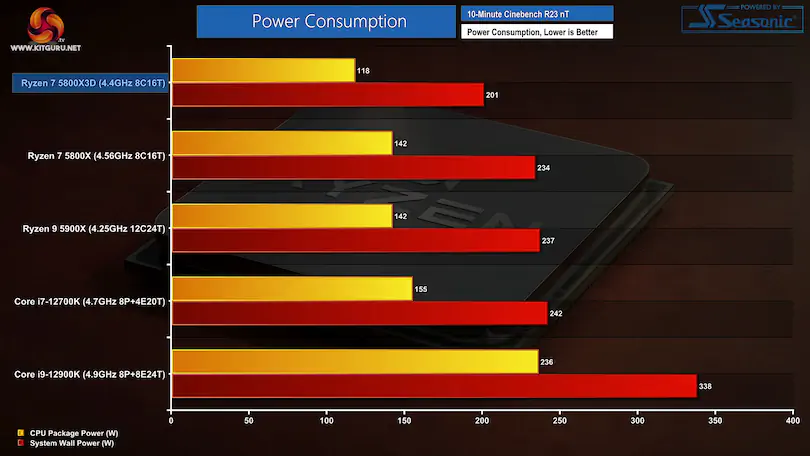 5800X3D가 12900ks보다 전력도 더 적게 먹는다