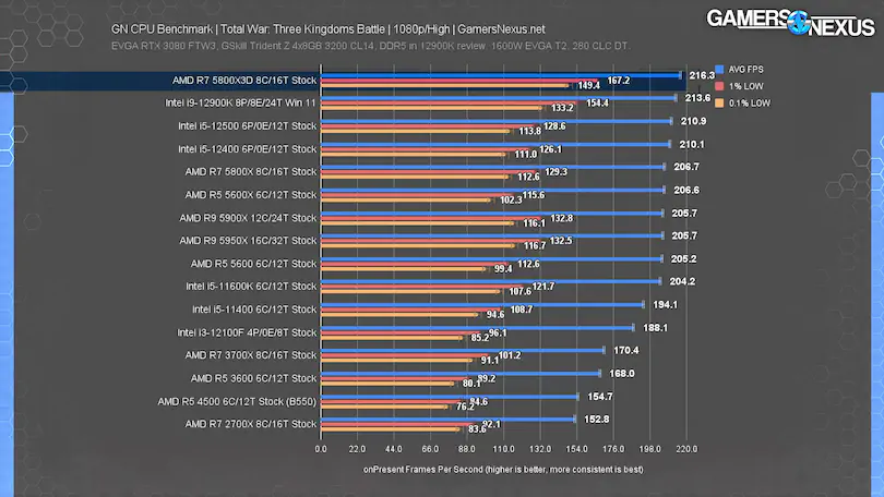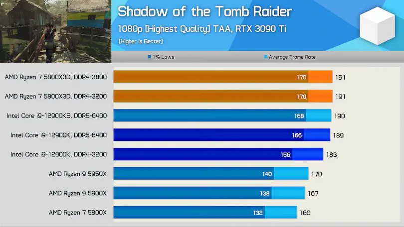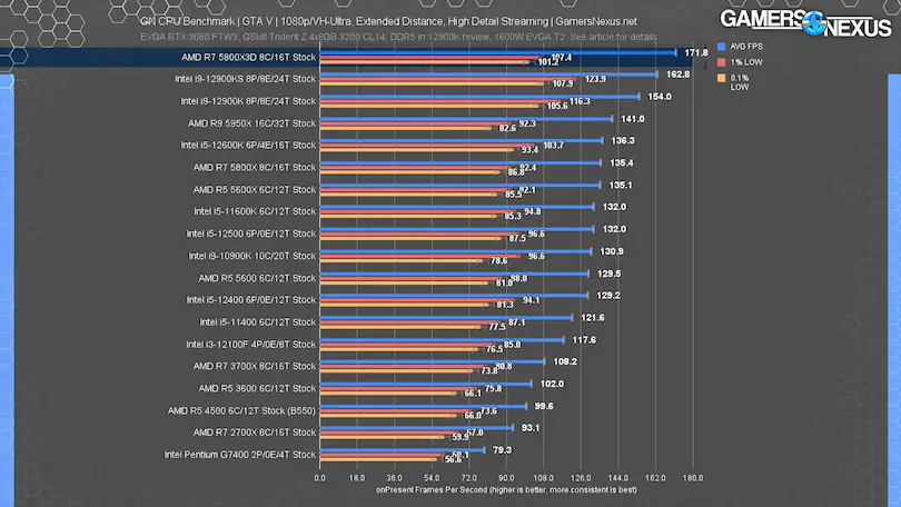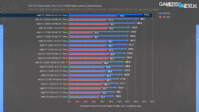 1%/0.1% 저점은 정말 흥미롭습니다. 내 이론은 캐시가 필요한 게임이지만 로드 인/아웃이 너무 자주 발생하면 더 큰 캐시의 이점이 있다는 것입니다. 캐시를 사용하지 않는 사람들은 혜택을 받지 못합니다. 그리고 로드 인/아웃이 많은 캐시는 더 큰 캐시가 대기 시간이 조금 더 길기 때문에 적중/나쁜 결과를 얻습니다. 따라서 게임에 따라 더 좋을 수도 나쁠 수도 있고 차이가 없을 수도 있습니다. 그러나 캐시가 클수록 컴파일러와 프로그래머가 해당 크기의 캐시를 목표로 하는 것이 더 쉬울 수 있습니다. 로딩 인/아웃에 대한 지연 시간이 있는 반면, 로딩 시기/방법 및 엔진/게임에 어떤 이점이 있는지 작업하고 계획해야 하는 일이 훨씬 더 많습니다.