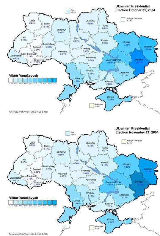 비겁한 방법을 다 쓴 끝에 야누코비치가 이겼지만, 너무 대놓고 부정선거라서 우크라이나 국민들이 엄청나게 반발함. 결국 2차 투표는 무효로 돌아갔고, 3번째 재선거 끝에 유셴코가 당선됨.