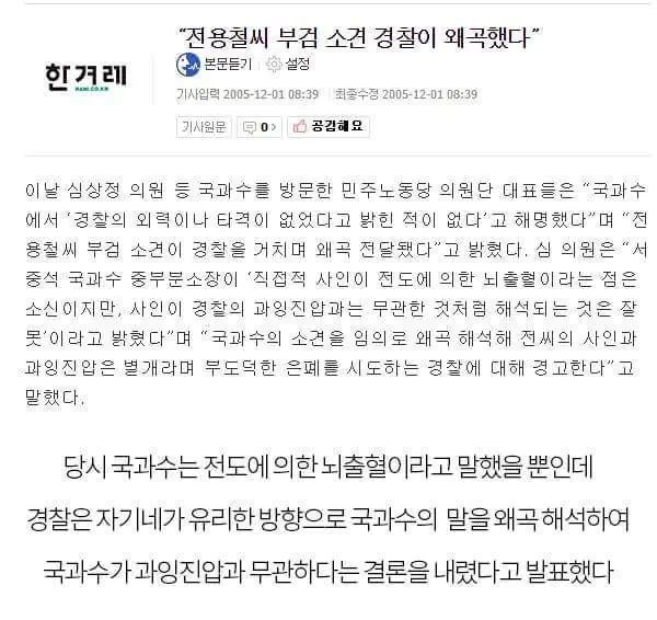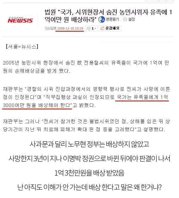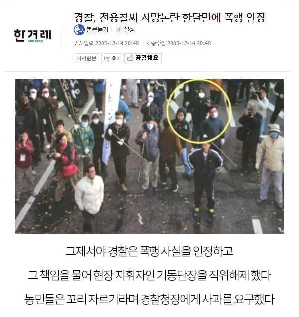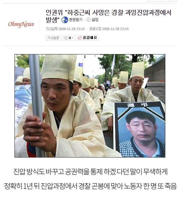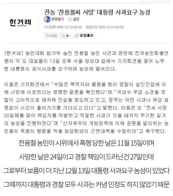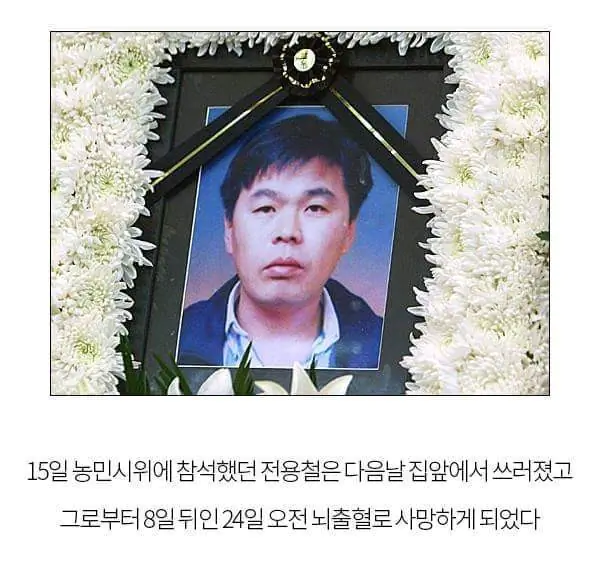 정용철-11월24일 농민,전농대회참가 경찰의집단구타 원인 운명 이것은 사망원인이 논란이 있지만 경찰의집단구타가 있었던건 사실