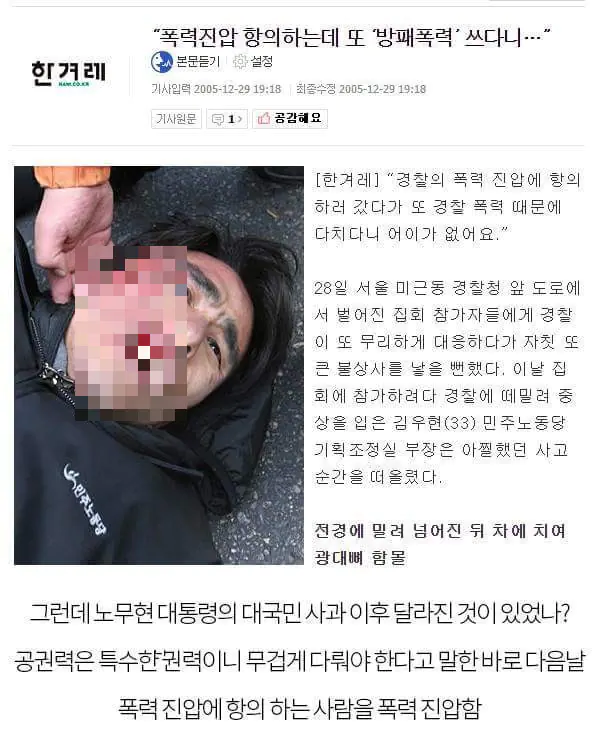 노무현 때 의경이 진짜 헬이었다며.. 뭐만 하면 데모 쳐하느라 보도블럭에 죽창에