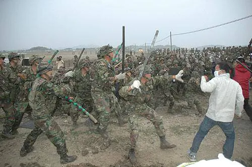그 당시 군인들 분위기로는 자기들은 방패와 헬멧 뿐인데, 죽창으로 찌르고 돌던지고 그래서, 저렇게 안하면 죽을 거 같았다더라.