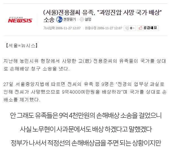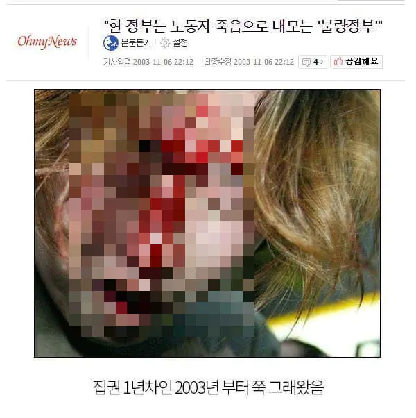 노무현 이 미친놈이 진짜로 군대 투입해서 진압해버릴 줄이야...