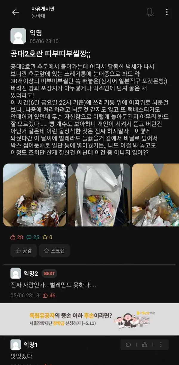 송장조차 떼지 않고 빵들을 무단투기ㄷㄷㄷㄷㄷ