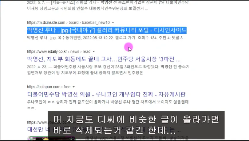 박영선 의원이 서울시장에 출마한 후 재난지원금을 코인 형태로 지급하겠다 했고 이후 박영선 의원 트윗에 루나 어쩌고 저쩌고 올라온것도 사실