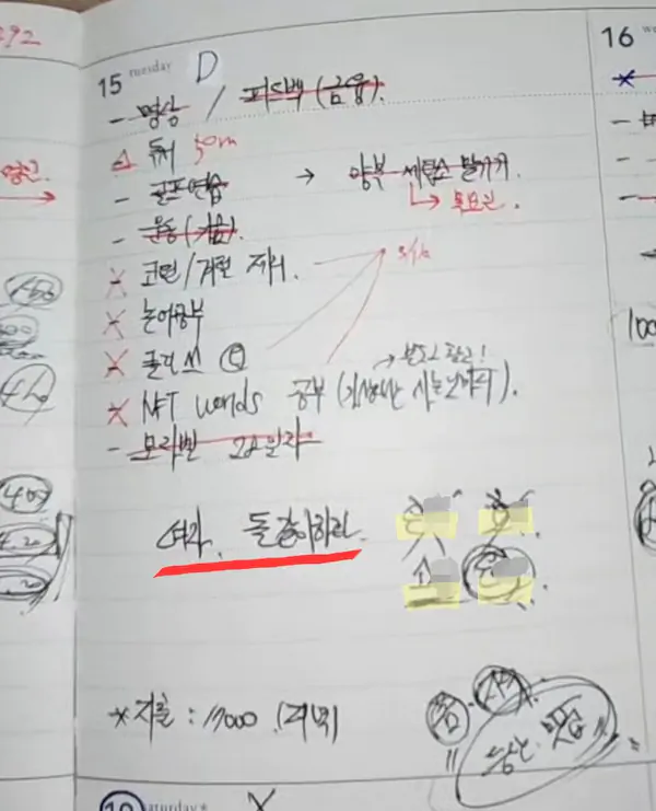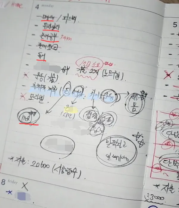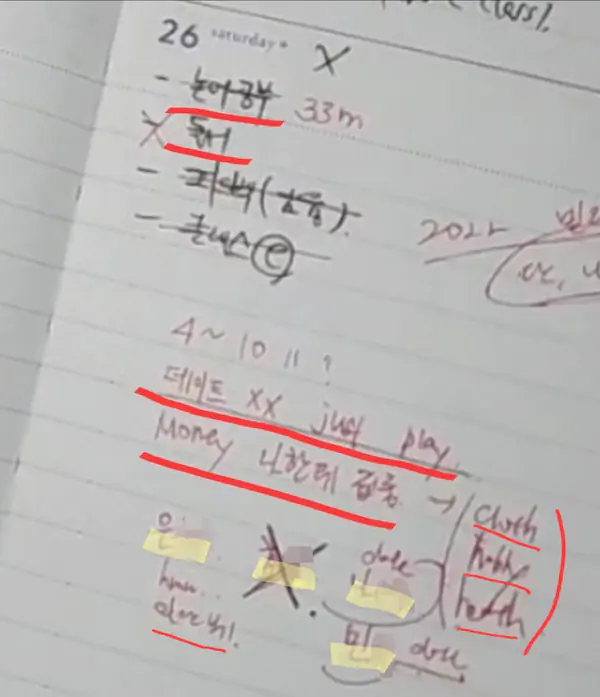 또한 일기장에는 ‘데이트에 돈.. 돈 아끼고 나한테 쓰자. 나한테 투자, 나한테 집중, Money-> me (hobby, cloth, health), 내 개발’ 이런 문구들이 있더라고.
