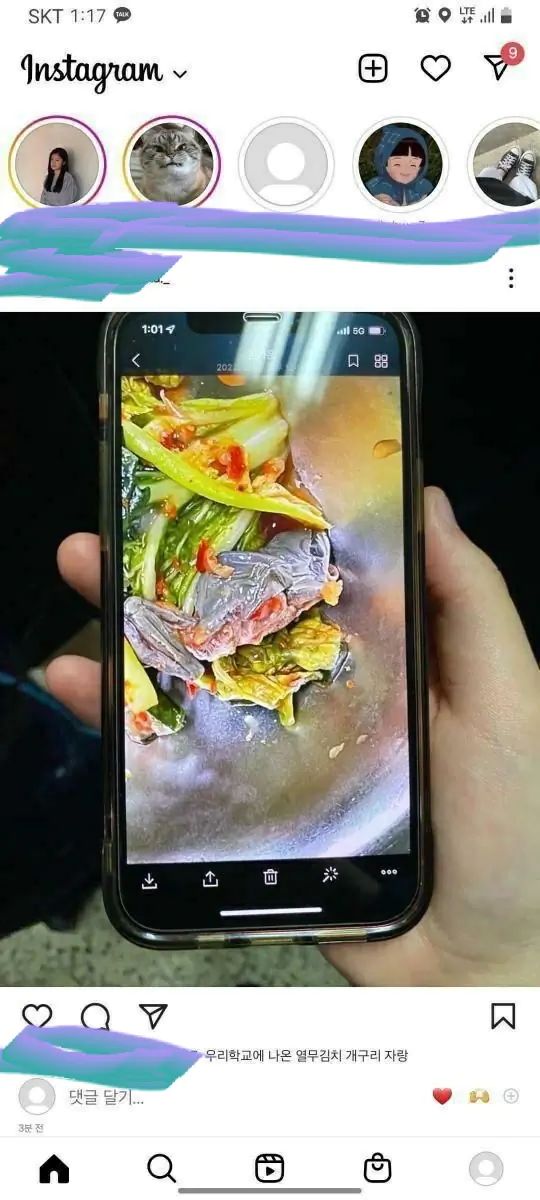 나머지 반 마리 남고 쌤이 닭고기인 줄 알고 드셨대요; 라고 말하면 대댓글에 구라라고 할 것 같은데 사실임... ^^........ 사진 모자이크 없이 직접적으로 봤는데 입 열고 머리 급식판에 처박고 있어서 보면 볼수록 소름 돋아요