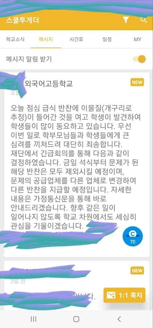 같은 재단 학교 재학생인데 원본 사진 애들끼리 싹 다 공유되고 있고 급식 먹으러 간게 너무 원망스럽고 힘들다