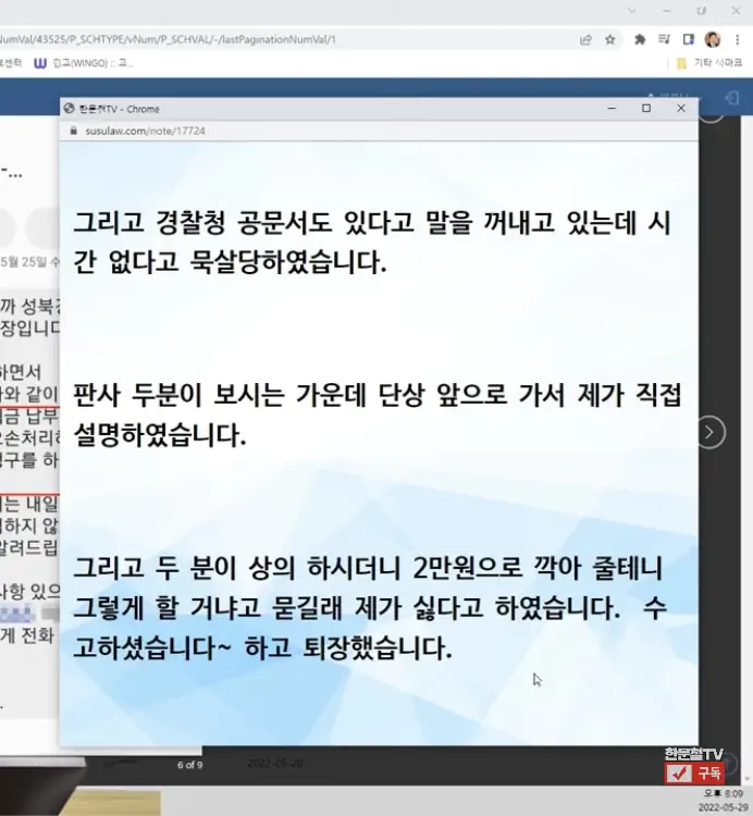 틀린것은 정확하게 세워져야하는데 판사가 시간없다는 이유로 3~4분가량의 동영상 확인을 거부했다는건 크게 잘못된거다. 큰사건이든 작은사건이든 억울한사람이 생겨서는 안된다.