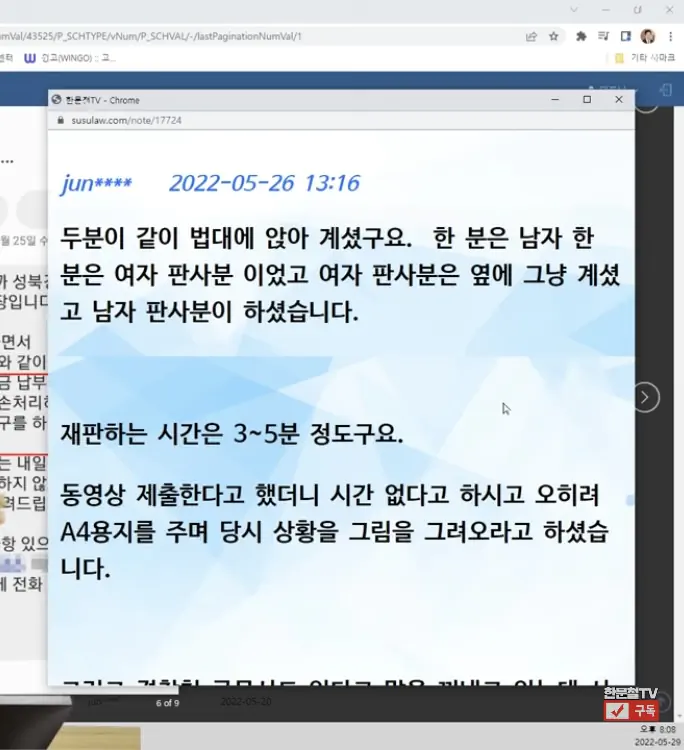 당사자의 고통을 감안한다면 2~3 분 정도는 판사가 할애해서 블랙박스를 봐줄 수도 있었을텐데 참 무성의하네.