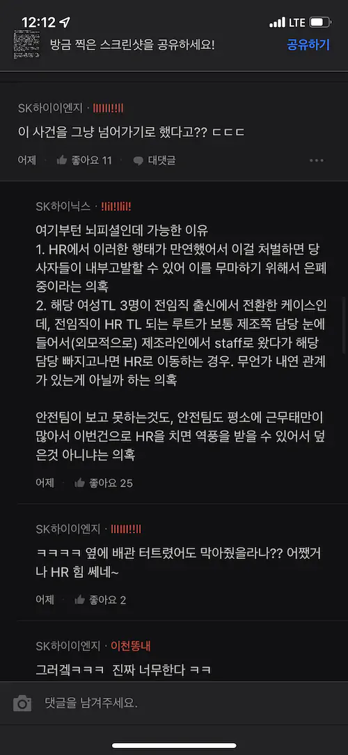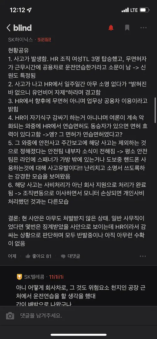 블라인드 하이닉스 무면허운전 사고 논란