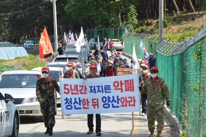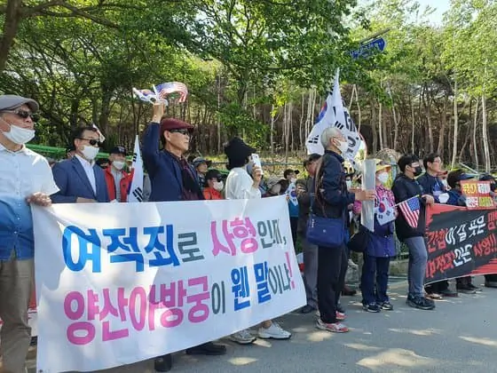 아크로비스타 앞에서도 시위하는데 양산만 성역이냐고 문재앙이 이사가라
