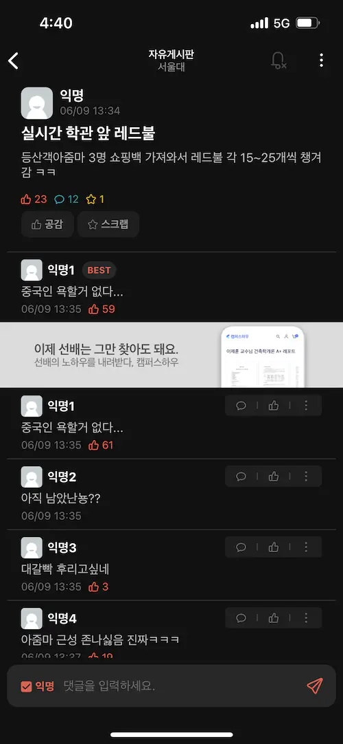 연세대 송도 기숙사 성행위 사건 에타 반응