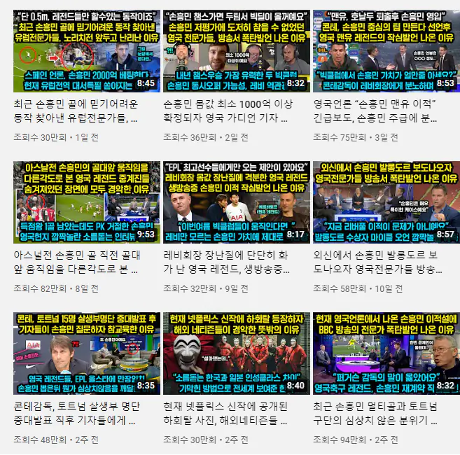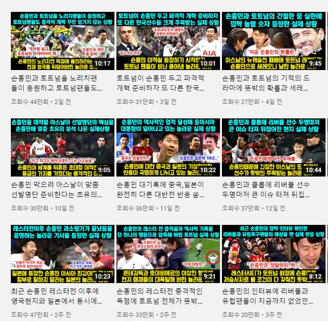 진짜로 가끔 로갓하고 뜨는거 보면 전세계가 벌벌떠는 이런거 없어지고 손흥민만 올라오더라