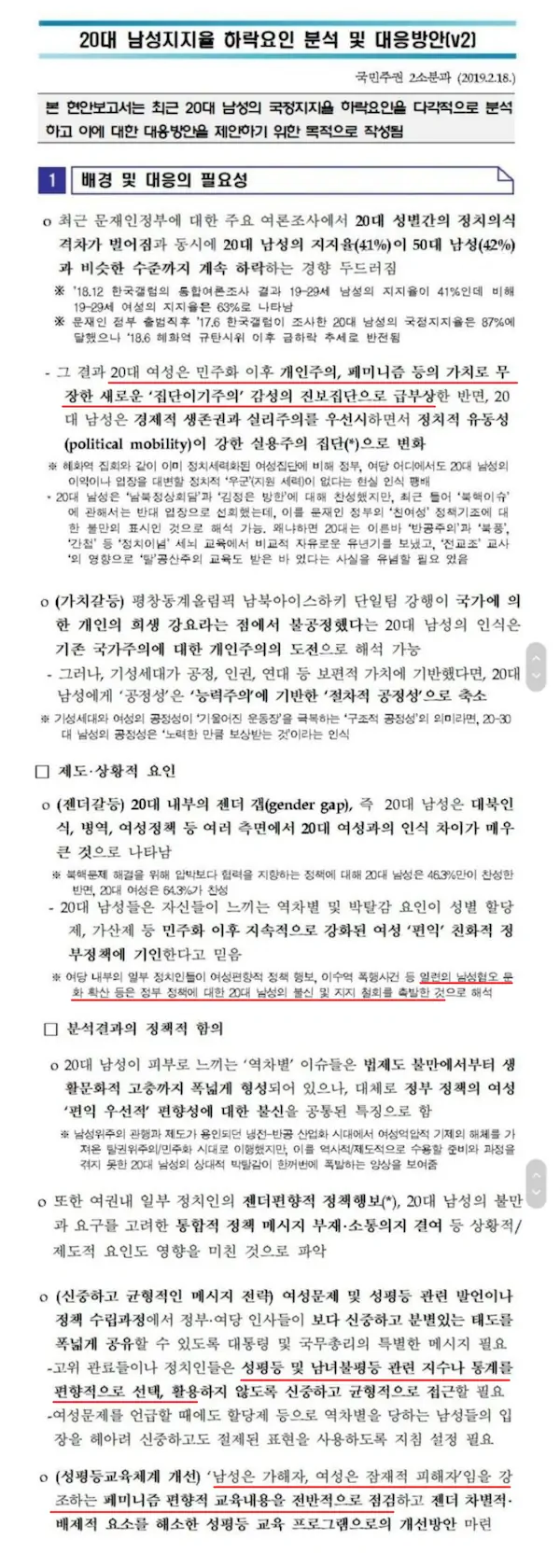 3년 전 문재인 청와대 젠더갈등 보고서 3줄 요약