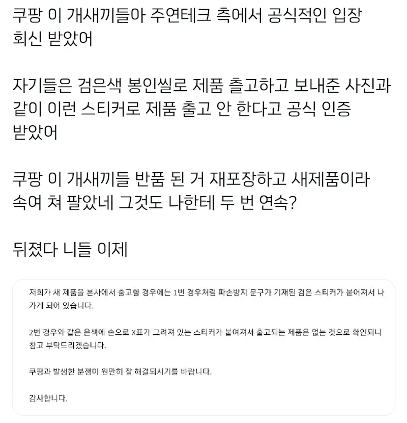 쿠팡은 걍 묻지마 반품 환불받고 그거 그대로 다른 사람한테 보내버림 ㅋㅋㅋㅋㅋㅋㅋㅋ