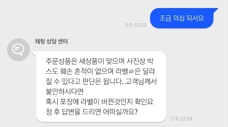 새제품인데 제조사에서 라벨이 바뀐걸수도있으니까 확인해보라고 함