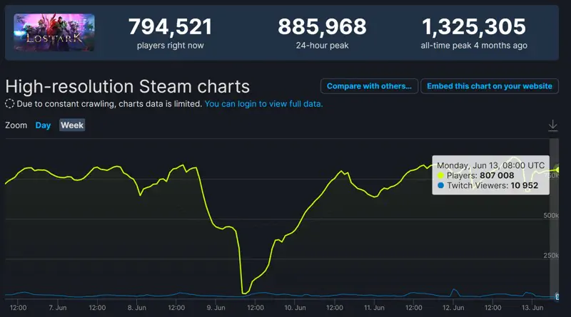 ㄹㅇ 로아는 빼박인게 트위치시청자같은 인기지표는 점점 바닥으로 떨어져가는데 동접만 솟아오르고 동접그래프도 존나 이상함 ㅋㅋㅋㅋㅋㅋㅋ